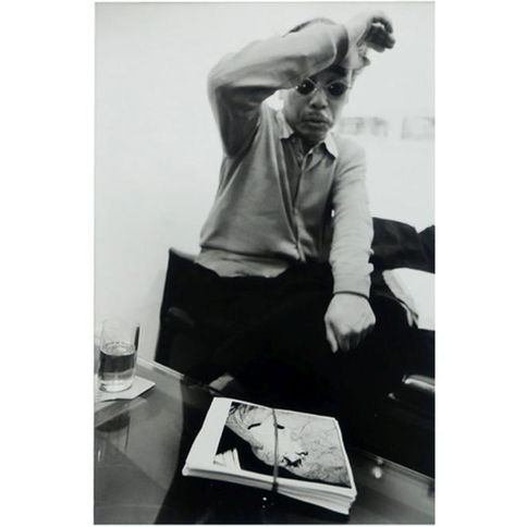 With framed photo of Nobuyoshi Araki.